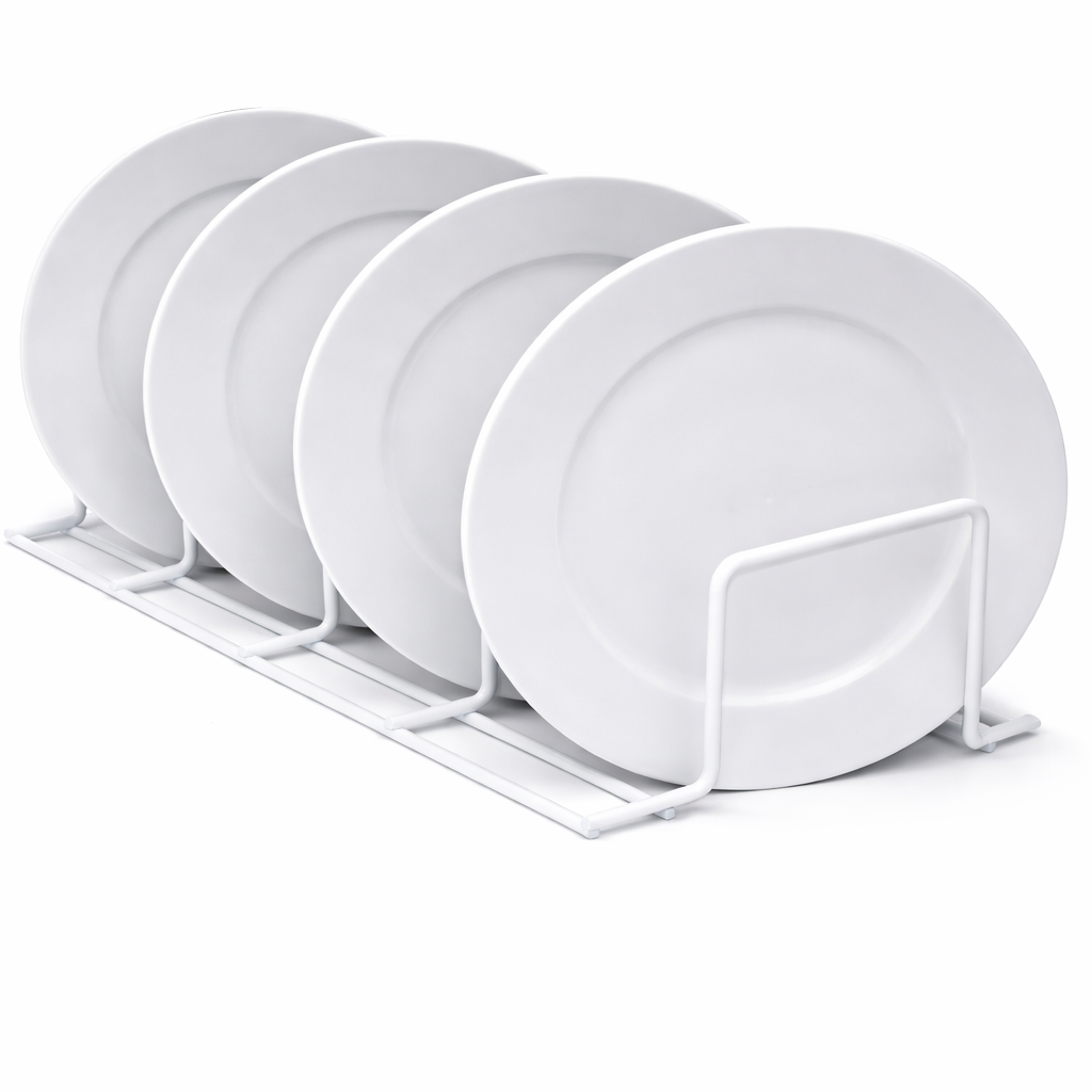 Designed for clean presentation and everyday durability, this white vinyl-coated wire display rack offers a simple, modern solution for showcasing products in retail and market settings. Made from sturdy 5 mm wire, it measures 7" W × 10" L × 3-1/4" H and features four evenly spaced 2-1/2" deep slots that keep items upright, visible, and easy to access. Suitable for countertops, tables, and fridges or freezers, it’s ideal for displaying plates, baked goods, books, and other flat items in bakeries, retail stores, craft markets, and pop-up displays.